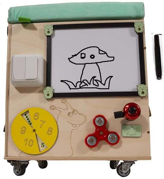 Az ülőkével és kerekekkel ellátott manipulatív puff ideális minden szülő számára. A termék gondoskodik gyermeke fejlődéséről, és egyúttal helyet ad gyermeke kedvenc játékainak is. A termék méretei 31x31x40,5cm.
